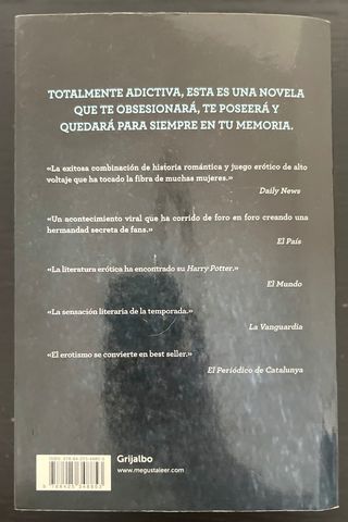 Vendo el famoso libro Cincuenta sombras de Grey. De E.L. James Si, esta es la novela de la que todos hablaban. No envios. Entrega en Barcelona . No negociable