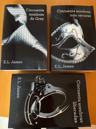 Pack trilogía “Cincuenta sombras” de E. L. James en español, en tapa blanda: incluye “Cincuenta sombras de Grey”, “Cincuenta sombras más oscuras” y “Cincuenta sombras liberadas”. Los tres libros están usados pero en buen estado general (sin páginas sueltas ni rotas). Se venden juntos en lote.