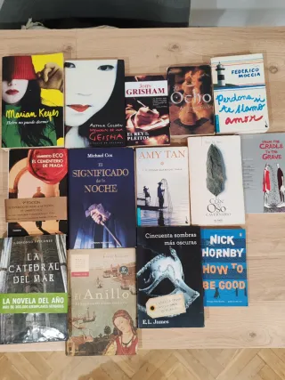Némesis-Philip Roth The calle of the wind-Jack London (en inglés) Tú rostro mañana - Javier Marías Ensayo sobre la lucidez -Saramago Los aires dificiles-Almudena Grandes El guardián entre el centeno- Salinger El oso cavernario-J.M.Auel Un lugar llamado nada -Amy Tan Perdona si te llamo amor-F.Moccia El rey de los pleitos-John Grisham El ocho-Katherine Neville Memorias de una geisha -A.Golden Cincuenta sombras más oscuras-E.L.James Helen no puede dormir -Marian Keyes El cementerio de praga-Umberto Eco La catedral del mar- I.Falcones El anillo-J.Molist El significado de la noche-Michael Cox How to be good-N.Hornby Y 3 libros más......