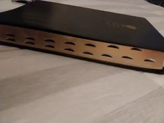 Vendo esta de mi colección. Las páginas con notas/marcados están en las fotos. El resto perfecto. Una bíblia difícil de encontrar ahora en cualquier estado!!! Biblia fina y buen tamaño para llevar o leer en cada. Dimensiones: 24.4 x 17 x 2.6cm Piel fabricada. Letra de 10.1pts. NASB revisión de texto 1995. Versículo por versículo como las biblias clásicas 🥰