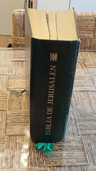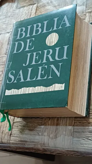 Biblia de Jerusalén. Biblia con letra grande. Ilustraciones y mapas. Papel con buen gramaje. Separadores en seda verde. Filo de oro. Tapas duras. Pesa 4 kilos . Mide 27,5 de alto 22 cm de ancho. 9 cm de grosor Reforce la tapa de la portada por prevenir(foto 9)en conjunto esta muy bien(como nuevo). Ver fotos Más cosas en mi perfil.