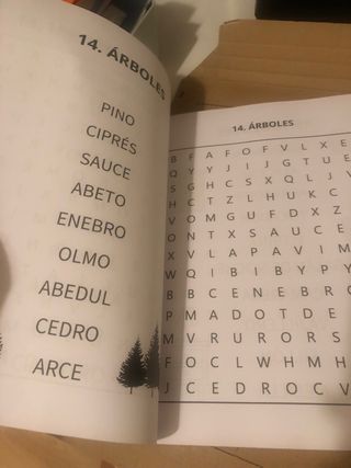 Sopas de letras en pack de 10 unidades tienen pequeñas taras esteticas en las portadas que No afectan su contenido, de hay el precio en Español en blanco y negro con letra grande, contienen soluciones, las taras esteticas se aprecien en las imagenes, son libros nuevos sin usar. Contenido 10 Libros de Sopa de letras Envios solo por Wallapop envios, entrega en mano zonas Alcala de henares, Torrejon de Ardoz, Villavilla Cualquier duda preguntame. Ret. 015