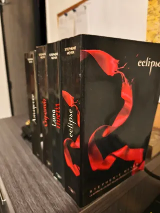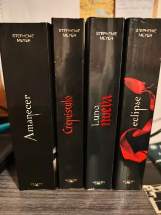 Los tres primeros tomos de la saga Crepúsculo, de Stephenie Meyer. Son: -Crespúsculo - Luna nueva - Eclipse