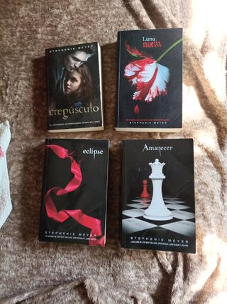40€ los cuatro libros. Serie de libros Crepúsculo completa: 1. Crepúsculo, 2.Luna Nueva, 3.Eclipse y 4.Amanecer. Autora: Stephenie Meyer. Editorial: Alfaguara. Tapa blanda. Todos ellos son primeras ediciones, comprados nada mas iban publicándose. Presentan pequeñas señales de uso, como en el lomo de los libros, como se pueden ver en las fotos. Literatura juvenil vampiros-romance (libros/cuentos/historias). Alguna pregunta, no dudes en contactar. Más libros para todas las edades y de todo tipo de géneros, y otras cosas en mi perfil.
