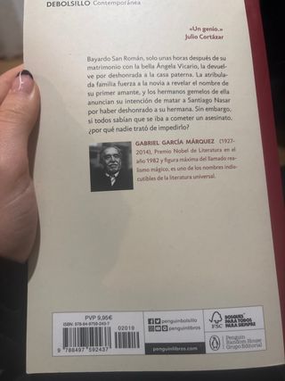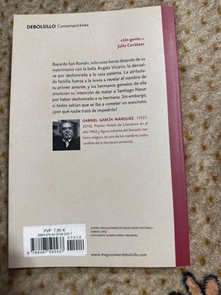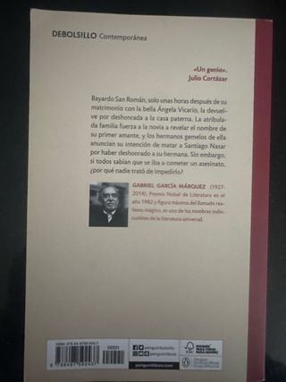 Libro cronica de una muerte anunciada de Gabriel García Márquez 137 paginas