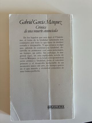 Libro "Crónica de una muerte anunciada" de Gabriel García Marquez
