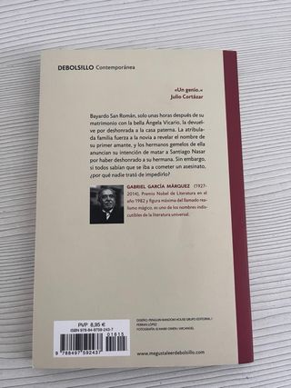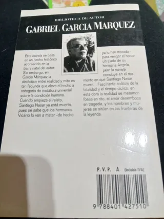 «El día en que lo iban a matar, Santiago Nasar se levantó a las 5.30 de la mañana para esperar el buque en que llegaba el obispo.» «Un genio.» Julio Cortázar «La suya es una devoción sin límites por las letras, desorbitada, febril, insistente, insomne entrega a las secretas maravillas de la palabra escrita.» Álvaro Mutis «Su mundo era el mío, traducido al español. No es extraño que me enamorara de él, no por su magia, sino por su realismo.» Salman Rushdie
