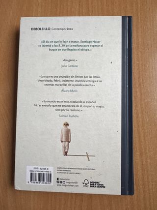 Libro Crónica de una muerte anunciada. Autor Gabriel García Márquez. Editorial DEBOLSILLO. En perfecto estado. Para Venta en persona. Zona Santa Eugenia / Ensanche de Vallecas / La Gavia Pago efectivo o Bizum