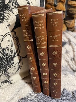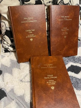 Tres libros de literatura española contemporanea,muy nuevos, encuadernacion tapa en piel, lujosos para tu biblioteca Titulos: 1 La ciudad y los perros de Mario Vargas Llosa 2 Crónica de una muerte anunciada de Gabriel Garcia Marquez 3 La familia de Pascual Duarte de Camilo Jose Cela 3,50 euros titulo Preguntame si quieres comprar mas de uno y cuales son Totalmente nuevos y bien conservados MVW 01-26