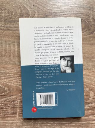 Libro de relatos breves donde Manuel Rivas mezcla ternura, humor y crítica social con un estilo poético y muy humano. Incluye historias ambientadas en Galicia que hablan de amor, memoria, injusticia y esperanza. Entre ellas destaca La lengua de las mariposas, uno de sus cuentos más conocidos, sobre la relación entre un niño y su maestro en los años previos a la Guerra Civil. Es un libro emotivo, fácil de leer y muy reconocido.