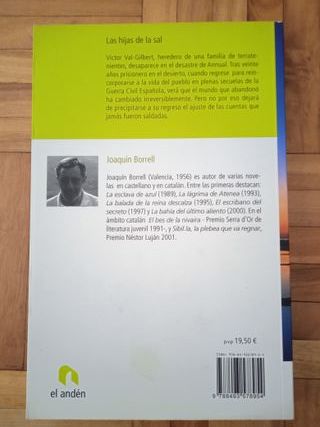 'Las hijas de la sal'. Joaquín Borrell (El Andén, Barcelona, 2007). 298 páginas. Tapa blanda. Blanco y negro. Español. DL: B-38284-2007. ISBN: 978-84-935789-5-4. Medidas: 22x15x3 cms. Argumento: Víctor Val-Gilbert, heredero de una familia de terratenientes valencianos, fue dado por muerto en el desastre de Annual. Cuando regrese en 1943 en plenas secuelas de la Guerra Civil Española, cuyas circunstancias ignora, encontrará que las tres hijas de Soledad, su amor de juventud, tienen la edad de la madre. ATENCIÓN: Libro con tara, le faltan 14 páginas por error de impresor. Rara avis. Más novelas en mi perfil. Más libros en mi perfil.