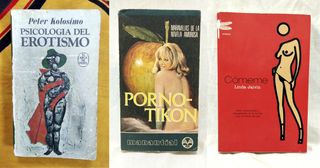 Encuadernación rústica de tapa blanda ilustrada. 01. Psicología del Erotismo. Peter Kolosimo. Plaza & Janés. 1972. 524págs. 02. Pornotikon. Maravillas de la novela amorosa. Jacinto León. Plaza & Janés. 1976. 18x10cm. 311 págs. 03. Cómeme. Linda Jaivin. Emecé. 2005. 280págs. 19x13cm. Precio no negociable.