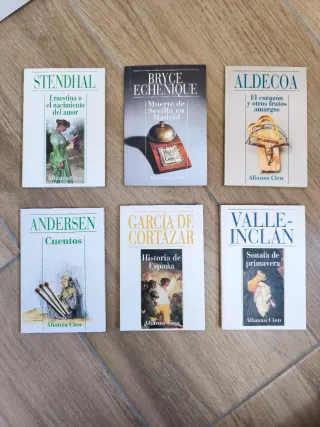 6 libros por 3€. Lote de seis libros: Andersen: Cuentos. Valle Inclán: Sonata de primavera. García de Cortázar: Historia de España. Aldecoa: El corazón y otros frutos amargos. Bryce Echenique: Muerte de Sevilla en Madrid. Stendhal: Ernestina o el nacimiento del amor. Alianza Cien. Todos en muy buen estado. ISBN: 9788420646237