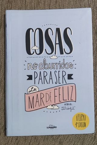 4a edición del libro "cosas no aburridas para ser la mar de feliz". El libro solo tiene un ligero desgaste en la cubierta trasera, pero está casi nuevo. Tiene todas las pegatinas intactas. Precio original: 15€