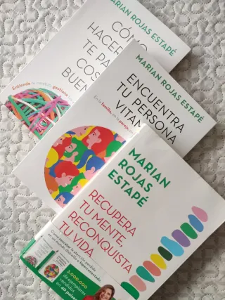 Lote de Marian Rojas Estapé. Nuevos Cómo hacer que te pasen cosas buenas. Entiende tu cerebro, gestiona tus emociones, mejora tu vida. Encuentra tu persona vitamina. En la familia, en la pareja, en los amigos, en el trabajo. Recupera tu mente, reconquista tú vida. Más libros en mi perfil, pregunta sin compromiso;)