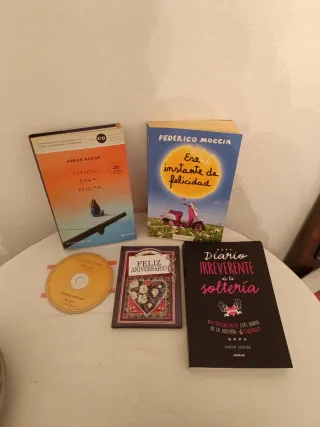 Cuatro libros de autoayuda para ser feliz de forma personal o en pareja feliz aniversario cuentos para pensar con el audiocuento en CD diario irreverente de la soltería y de Federico moccia es instante de felicidad el precio es por todo el lote