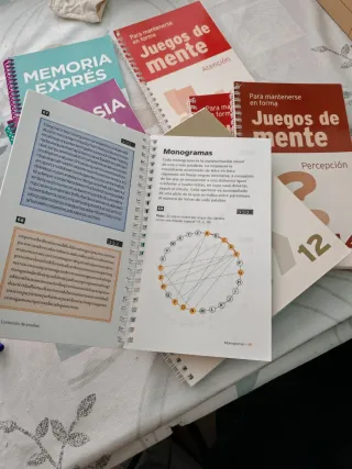 Cuadernos para mantener la mente en forma con ejercicios de percepción, comunicación, inteligencia numérica, retentivs, atención, orientación espacial... Muy entretenidos para adultos y niños mayores.
