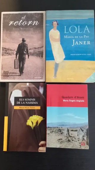 Cuatro libros por 2€, cada uno 50 ctms - El retorn - Quadern d'Aram -Els saomnis de la Nassima - Lola Puedo entregar en mano en Gorg (Badalona) o sagrada familia (Barcelona)