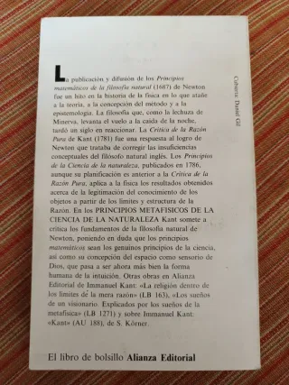 Libro de IMMANUEL KANT PRINCIPIOS METAFÍSICOS DE LA CIENCIA DE LA NATURALEZA.