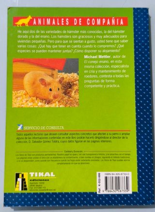 Libro - El nuevo libro Hámsters dorado y enano. Tapa blanda. Autor: Michael Mettler Editorial: Tikal Paginas: 125 En muy buen estado. Los envíos se realizan con empaquetado resistente, para que le llegue en perfecto estado. Mira mi perfil, igual hay algo que te interese. Se hacen lotes. Envíos conjuntos.