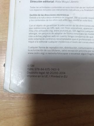 Libro de texto de Ciencias Sociales, editorial Santillana, nuevo. Posibilidad de entrega en mano en Aranjuez.
