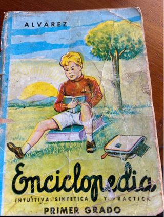 Dos libros, una enciclopedia, intuitiva, sintética y práctica primer grado Álvarez. Y un libro de elemento de ciencias físico, naturales grado medio de Pla, Cargol, Joaquín