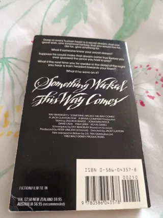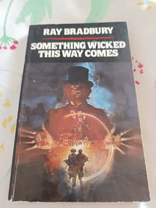 Novela Something Wicked This Way Comes escrita por Ray Bradbury. - Tapa dura. - Ilustraciones llamativas en la portada. En español es "La feria de las tinieblas".