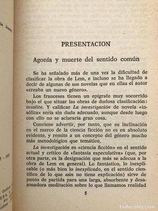 LA INVESTIGACIÓN. AUTOR, STANISLAW LEM. EDITORIAL BRUGUERA, AÑO 1977. LIBRO 224 PÁGINAS EN RÚSTICA. 1ª EDICIÓN DE JUNIO DE 1977. TRADUCCIÓN DE JADWIGA MAURIZIO. MUY BUEN ESTADO, CON POCO USO.