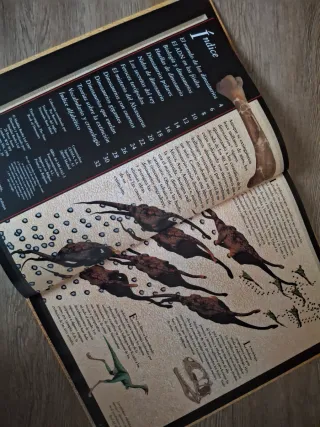 Libro explicativo de dinosaurios, con un pequeño poste en el final del libro.