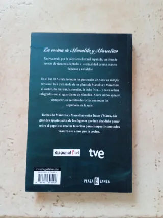 La cocina de Manolita y Marcelino: Recetas de siempre para hacer hoy". Detalles del libro Título Completo: La cocina de Manolita y Marcelino: Recetas de siempre para hacer hoy. Autores: Itziar Miranda y Manuel Baqueiro, los actores que interpretan a los personajes de Manolita y Marcelino en la popular serie española Amar en tiempos revueltos. Contenido: El libro es un recorrido por la cocina tradicional española, presentando más de 70 recetas clásicas (como cocido, lentejas, torrijas y leche frita) adaptadas de forma saludable y deliciosa para la actualidad. Contexto: Las recetas están inspiradas en los platos que se sirven en el b