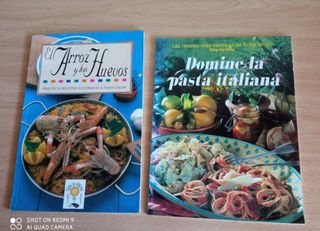 Vendo dos libros "El arroz y los huevos" y "Domine la pasta italiana". Con recetas paso a paso. Tapa blanda. En perfecto estado. Precio por los dos.. Entrego en la salida del metro Campamento o en Plaza de los Cubos.