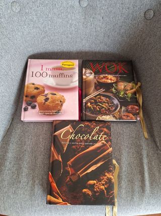 Pack de libros de recetas Editorial Parramon. Incluye: 1 masa, 100 muffins / Chocolate / Wok. Su precio original individual es 7.95€ Perfecto estado Cocina recetas postres menú dieta nutrición kilos gastronomía platos hogar casa regional alimentación comida cultura español guía métodos tradición clásicos dietetica comida alimentos dulces asiática japonesa sushi cumpleaños tartas Asia Tailandia Tailandesa magdalenas chef gourmet regalo original Navidad festivos reyes ocio entretenimiento hobby amateur
