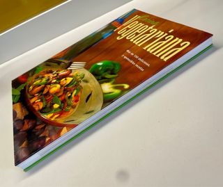 Libro de tapa blanca con recetas vegetarianas