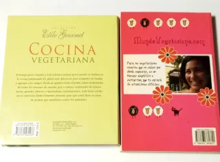 1. Título, "platos fuertes vegetarianos". Autora Kathryn Hawkings. Isbn 8782075130081 . Libro de tapas dura en perfecto estado y con bonitas fotos. 2. Libro de cocina vegetariana. Tapa blanda. En perfecto estado. Con bonitas fotos. ISBN 8423793605092