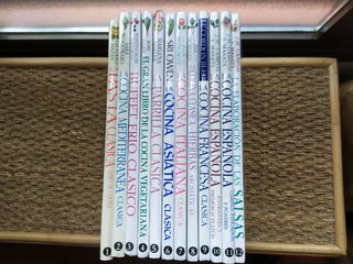 12 tomos, año 1999. Tapa dura. 160 páginas cada libro. Precio de la colección 50€. Por separado 5€. N° 1: La pasta clásica. N° 2: La cocina mediterránea clásica. N° 3: Buffet frío clásico. N° 4: El gran libro de la cocina vegetariana. N° 5: La parrilla clásica. N° 6: La cocina asiática clásica. N° 7: La cocina italiana clásica. N° 8: La cocina clásica con hierbas aromáticas. N° 9: Le Cordon Bleu. La cocina francesa clásica. N° 10: La cocina española. Entrantes y primeros platos. N° 11: La cocina española. Carnes, pescados y postres. N° 12: La elaboración de las salsas. Te invito a entrar en mi perfil para ver otros artículos!
