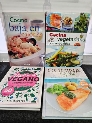 ▪️Lote de 4 libros de cocina saludable: 🔸️"Vive más vegano. La guía para que los jóvenes se pasen a un estilo de vida más vegetal". Ediciones Oberon. Año 2022. ISBN: 978-84-415-4485-7. Tapa dura. Páginas: 128. 🔸️"Cocina ligera. Recetas variadas para todos los días". Tapa dura. ISBN: 978-3-625-17015-0. Páginas: 128. 🔸️"Gran libro de la cocina vegetariana y macrobiótica". Servilibro. Tapa dura. ISBN: 84-7971-534-0. Páginas: 196. 🔸️"Gran libro de cocina baja en calorías". Servilibro. Tapa dura. ISBN: 978-847971-625-7. Páginas: 195. ▪️En perfecto estado. ▪️Ref.: x05-9046/FA/alm-est_libr