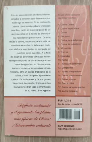 Libro de cocina china con ilustraciones, en muy buen estado, no se ha usado.