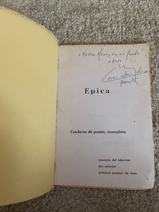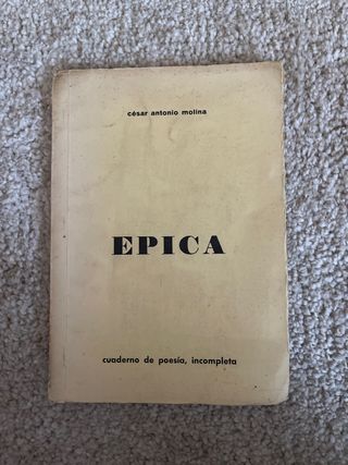 Libro firmado por el autor Cesar Antonio Molina en 1975, es un libro de poesía titulado Epica, cuaderno de poesía incompleta. Su autor es Cesar Antonio Molina exministro de cultura de España.