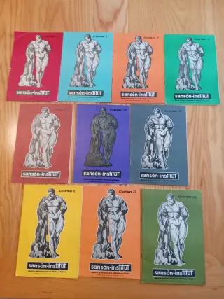 Lote de 10 fasciculos, falta el 5 y el 9 para la colección de los 12 originales del Sansón Institut( Centro Internacional de cultura física) años 70 approx. Material de entrenamiento y culturismo clásico por correspondencia, sin roturas Ideal coleccionistas, nostálgicos fitness o decoración vintage