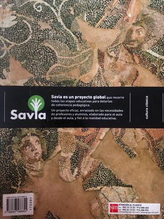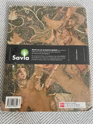Libro de texto,2° ESO cultura clásica, editorial SM .savia. Con forro . Buen estado , tiene partes subrayadas a color . Ver foto .