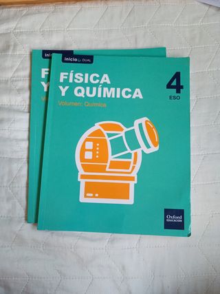 Dos tomos (Física y química) de la editorial Oxford Educación con algunas anotaciones en su interior.