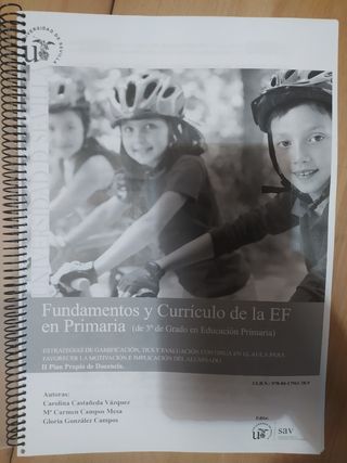 Manual de Fundamentos y Currículo de la Educación Física en primaria. Encuadernado con tapa delantera y trasera.