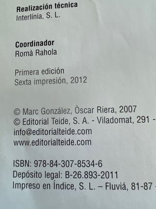 TEIDE Educació Física BLOC Activitats ESO 3 / 4 TEIDE Educación Física BLOC Actividades ESO 3 / 4 NUEVO, SIN USAR. Vale para 3° y 4° ESO. Tengo 2 ejemplares. TAMBIÉN TENGO EL LIBRO DE TEXTO en VALENCIANO/CATALÁN CASTELLANO. Tengo más cosas en mi perfil. PUEDO DESPLAZARME A ENTREGARLO.