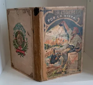 LA EDUCACIÓN POR LA VISTA., El título me figuro que,se refiere a las numerosas, pequeñas ilustraciones que acompañan e ilustran el texto. 258 páginas. 22 x 15 cm. Cartoné editorial ilustrado. Lomo de tela. Sin fecha, final S.XIX o principios del S.XX