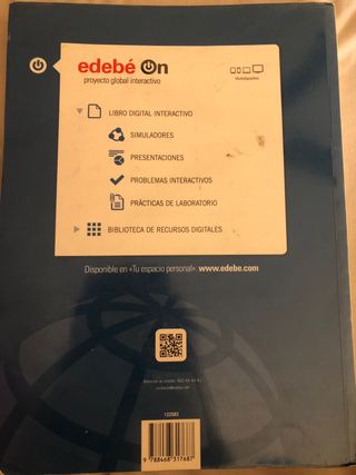 Libro Física y Química 1 Bach. Editorial edebé. Algunas partes subrayadas y con anotaciones mínimas.