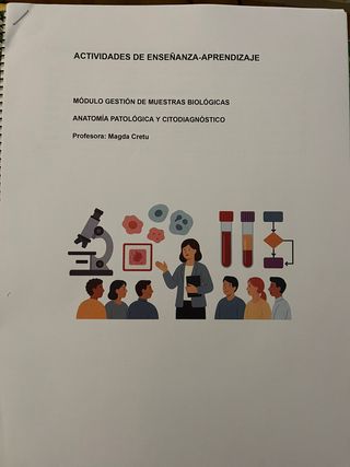 Vendo programación didáctica completa del módulo “Gestión de Muestras Biológicas” del ciclo Técnico Superior en Anatomía Patológica y Citodiagnóstico. ⭐ Nota obtenida: 9 (demostrable con captura oficial) 📚 Incluye: -Programación didáctica completa según RÚBRICA -GUIÓN PROPIO PARA LA DEFENSA -12 unidades didácticas desarrolladas y visuales con imágenes -Actividades y tareas programadas por cada unidad **PRESENTADA CON TRÍPTICO, te puedo explicar para ayudarte a presentar. 📦 Entrega en mano o por Wallapop (material en soporte físico).