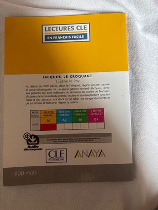 Libro lectura de francés, nivel A1, comprado para 2º de la ESO en nuestro caso. Como nuevo. Forrado y sin usar. Se entrega en persona en zona Camp de l'Arpa (Barcelona).
