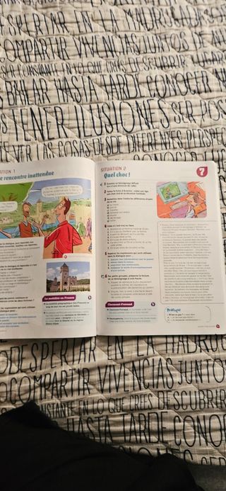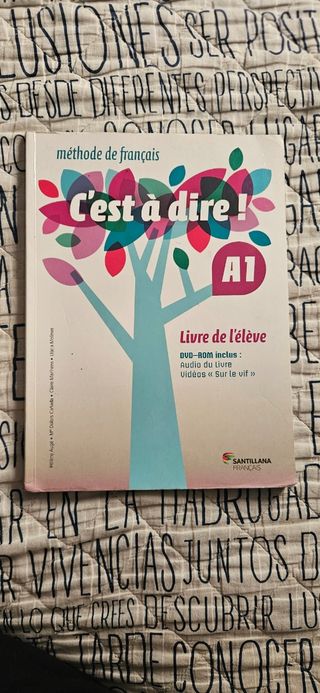 Libro de texto: C'est à dire! A1 Francés Editorial Santillana ISBN: 978-84-92729-62-3 Está bastante bien, ninguna página rota, solo alguna marca con lápiz y, al final hay un poco de boli (adjunto foto), pero no afecta al libro.