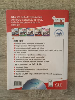 Libro de francés B1.2 écho Méthode de français, 2°edition. En perfecto estado,como nuevo, con CD y Portfolio.