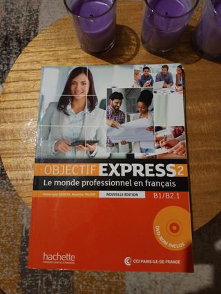 Pack de francés profesional de nivel B1-B2. El método Objectif Express es uno de los más utilizados para aprender francés especializado en el mundo de la empresa. Ideal para quien necesite mejorar su nivel de francés por motivos laborales. El pack incluye: -Libro del alumno con audios en CD -Cuaderno de ejercicios con soluciones. Se entrega en mano en Vigo o se envía al resto de España. ¡No dudes en ver en mi perfil productos similares! 😃